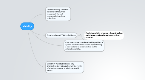 1. Concurrent criterion-related validity evidence - yields a numeric value scored by comparing a new test and to an established test to determine validity.