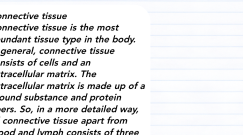 2.1.1. Connective tissue Connective tissue is the most abundant tissue type in the body. In general, connective tissue consists of cells and an extracellular matrix. The extracellular matrix is made up of a ground substance and protein fibers. So, in a more detailed way, all connective tissue apart from blood and lymph consists of three main components: cells, ground substance and fibers.