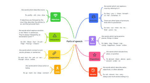 A simple mind map for parts of speech