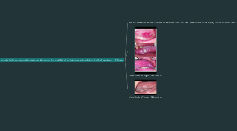 8.1. Most oral cancers are related to tobacco and excessive alcohol use. The lateral borders of the tongue, floor of the mouth, lips, and the soft palate are the most common sites for oral cancer. - SWilkerson