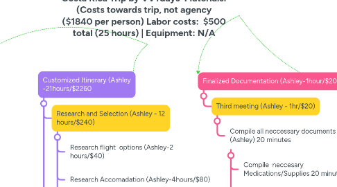 Costa Rica Trip by VVTdays Materials: (Costs towards trip, not agency ($1840 per person) Labor costs: $500 total (25 hours) | Equipment: N/A by Mind Map: Costa Rica Trip by VVTdays  Materials: (Costs towards trip, not agency ($1840 per person) Labor costs:  $500 total (25 hours) | Equipment: N/A