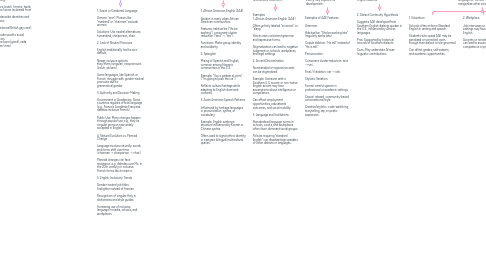 3.1.1.1.1. 1. African American English (AAE) Spoken in many urban African American communities. Features: habitual be (“He be working”), consonant cluster reduction (“test” → “tes’”). Functions: Marks group identity and solidarity. 2. Spanglish Mixing of Spanish and English, common among Hispanic communities in the U.S. Example: “Voy a parkear el carro” (“I’m going to park the car”). Reflects cultural heritage while adapting to English-dominant contexts. 3. Asian American Speech Patterns Influenced by heritage languages in pronunciation, syntax, or vocabulary. Example: English sentence structure influenced by Korean or Chinese syntax. Often used to signal ethnic identity or navigate bilingual/multicultural spaces.