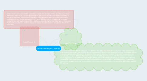 1. Output Devices move information out of the computer. One example of an output device would be the monitor, which is used to view the information that you are inputting researching or wanting to see on the computer. The application to learning using this device would be to have the students view their writings, pictures, and applications that are available to them for additional resources instead of having to see it on paper. Some challenges would be the lighting or text size on the screen. The benefits would be the ability to change the screen resolution and text size to make it work for every child.