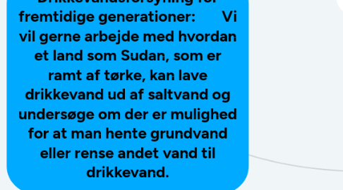 Drikkevandsforsyning for fremtidige generationer: Vi vil gerne arbejde med hvordan et land som Sudan, som er ramt af tørke, kan lave drikkevand ud af saltvand og undersøge om der er mulighed for at man hente grundvand eller rense andet vand til drikkevand.
