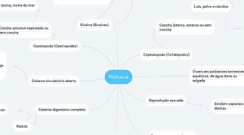 Mapa com características dos moluscos