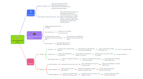 1.2.1. Taylor believed that all workers are motivated by money so he promoted the idea of a "fair day's pay for a fair day's work". in other words, if a worker didn't achieve enough in a day, they didn't desrve to be paid than another who is highly productive.