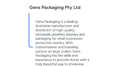 1. Gens Packaging is a leading Australian manufacturer and distributor of high-quality wholesale jewellery displays and packaging for retail businesses across the country. With customisation and branding options on large orders, Gens Packaging has the skills and experience to provide stores with a truly beautiful way to showcase their jewels, rings, necklaces, and more.