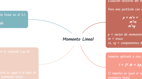 3. Ecuación vectorial del momento lineal Para una partícula con componentes: **p = m*v =** ** m*vx** **m*vy** p = vector de momento lineal m = masa vx, vy = componentes de la velocidad