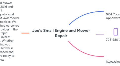1. Joe's Small Engine and Mower Repair, established in 2016 and conveniently situated in Appomattox, is your go-to local provider for all kinds of lawn mower repairs and small engine fixes. We have strongly established ourselves as a reliable service provider in the region, known for our rapid turnarounds and high level of customer satisfaction. Whether your chainsaw is causing you troubles or your snow blower is stuttering, our experienced and friendly technicians are ready to restore them to like-new conditions.