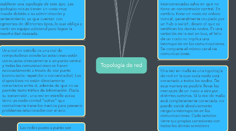 12. una visión topológica, es parecida a una serie de redes en estrella interconectadas salvo en que no tiene un concentrador central. En cambio, tiene un nodo de enlace troncal, generalmente ocupado por un hub o switch, desde el que se ramifican los demás nodos. Es una variación de la red en bus, el fallo de un nodo no implica una interrupción en las comunicaciones. Se comparte el mismo canal de comunicaciones.