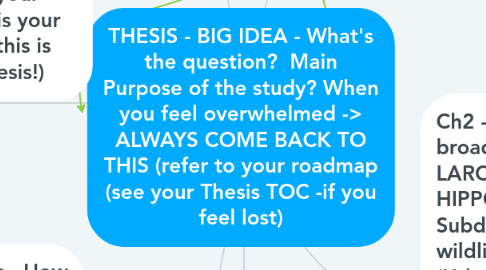 THESIS - BIG IDEA - What's the question? Main Purpose of the study? When you feel overwhelmed -> ALWAYS COME BACK TO THIS (refer to your roadmap (see your Thesis TOC -if you feel lost)von Sherry Fabricant