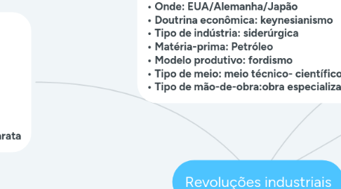 1. 2ª revolução industrial • Quando: século XIX • Onde: EUA/Alemanha/Japão • Doutrina econômica: keynesianismo • Tipo de indústria: siderúrgica • Matéria-prima: Petróleo • Modelo produtivo: fordismo • Tipo de meio: meio técnico- científico • Tipo de mão-de-obra:obra especializada e alienada