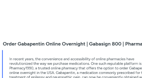 1. In recent years, the convenience and accessibility of online pharmacies have revolutionized the way we purchase medications. One such reputable platform is Pharmacy1990, a trusted online pharmacy that offers the option to order Gabapentin online overnight in the USA. Gabapentin, a medication commonly prescribed for the treatment of epilepsy and neuropathic pain, can now be conveniently obtained with just a few clicks. With a professional and user-friendly interface, Pharmacy1990 ensures a seamless and secure ordering process for the general public. By providing this service, individuals can now receive their much-needed medications promptly, without the hassle of physically visiting a traditional pharmacy. Pharmacy1990's commitment to professionalism and efficiency has made it a go-to choice for those seeking quick and reliable access to Gabapentin. https://www.bark.com/en/us/company/order-gabapentin-online-overnight--gabasign-800--pharmacy1990/no00M/
