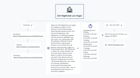 2. Step into ZAI Nightclub Las Vegas, the newest sensation in the dynamic Fremont/downtown area! Nestled upstairs at the 700 Fremont Experience, ZAI Nightclub is a thrilling escapade into the world of nightlight and live music. Our club pulses with the energy of diverse musical performances, featuring an eclectic mix of artists from all genres, ensuring every night is a unique experience. ZAI Nightclub is where fun meets fantasy. Let your hair down, dance to your heart's content, and immerse yourself in the vibrant spirit of Fremont. Embracing our motto "All Animals Welcome," we create an inclusive, exhilarating environment that welcomes everyone to join the party. Join us and experience the essence of Fremont's nightlife.