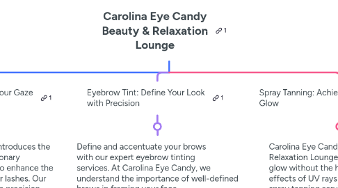 3.1. Carolina Eye Candy Beauty & Relaxation Lounge offers a sun-kissed glow without the harmful effects of UV rays through our spray tanning services. Our spray tanning solution is expertly applied, providing an even and natural-looking tan that suits your skin tone. Step into our salon and leave with a radiant and bronzed complexion, bringing the warmth of summer to any season.