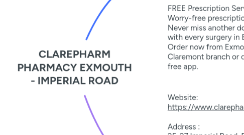 2. Website: https://www.clarepharmpharmacy.co.uk/clarepharm-exmouth-imperial-road Address : 25-27 Imperial Road, Exmouth, Devon, EX8 1DB Phone Number: 01395 272079 Contact Email ID: pharmacy.ff748@nhs.net Opening Hours: Mon - Sat: 09:30 AM - 05:30 PM Sun - Closed Bank Holidays - Closed