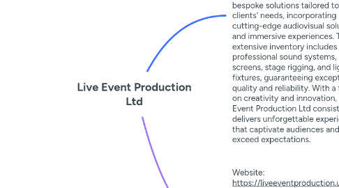 1. Live Event Production Ltd is a leading provider of comprehensive event production services, specialising in sound, lighting, staging, and AV equipment rental. With a team of skilled technicians and state-of-the-art technology, they ensure seamless execution for concerts, conferences, festivals, and corporate events. From concept to completion, they offer bespoke solutions tailored to clients' needs, incorporating cutting-edge audiovisual solutions and immersive experiences. Their extensive inventory includes professional sound systems, LED screens, stage rigging, and lighting fixtures, guaranteeing exceptional quality and reliability. With a focus on creativity and innovation, Live Event Production Ltd consistently delivers unforgettable experiences that captivate audiences and exceed expectations.
