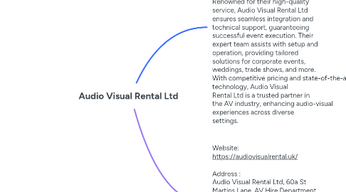 1. Audio Visual Rental Ltd specialises in providing top-tier AV equipment rental services, catering to events, conferences, and presentations. They offer a comprehensive range of products including projectors, sound systems, microphones, LED screens, and lighting equipment. Renowned for their high-quality service, Audio Visual Rental Ltd ensures seamless integration and technical support, guaranteeing successful event execution. Their expert team assists with setup and operation, providing tailored solutions for corporate events, weddings, trade shows, and more. With competitive pricing and state-of-the-art technology, Audio Visual Rental Ltd is a trusted partner in the AV industry, enhancing audio-visual experiences across diverse settings.