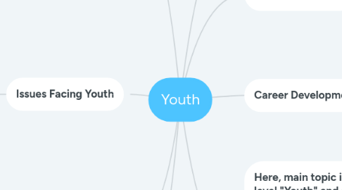 8. Here, main topic is at the top level "Youth" and subsequent titles are subtopics under their respective higher-level topics. Further each subtopic is related to its parent topic (for example "Youth Unemployment" is under the topic "Issues Facing Youth"). You can create more deeply nested subtopics as per requirements. This mindmap provides an overview of the topic "Youth".