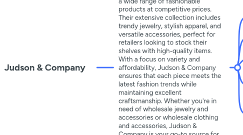 1. Judson & Company is a leading provider of wholesale jewelry, clothing, and accessories, offering a wide range of fashionable products at competitive prices. Their extensive collection includes trendy jewelry, stylish apparel, and versatile accessories, perfect for retailers looking to stock their shelves with high-quality items. With a focus on variety and affordability, Judson & Company ensures that each piece meets the latest fashion trends while maintaining excellent craftsmanship. Whether you're in need of wholesale jewelry and accessories or wholesale clothing and accessories, Judson & Company is your go-to source for all your wholesale needs. Enhance your inventory with their stylish and diverse offerings.
