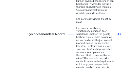 1. Corona herstel bij Fysio Veenendaal Noord Het coronavirus kan zeer wisselende klachten veroorzaken - waar de één op een verstopte neus na nergens last van heeft, kampt de ander met benauwdheid en ligt weer een ander met koorts op bed. In een groot deel van de gevallen verdwijnen deze klachten na verloop van tijd vanzelf, maar sommige ex-coronapatiënten blijven weken of zelfs maanden last houden. Met name kortademigheid, vermoeidheid en cognitieve klachten blijven lang sluimeren. Bent u ook besmet geweest met het coronavirus, en wil het herstel maar niet vlotten? Bij Fysio Veenendaal Noord kunt u een corona herstel traject volgen. Op deze pagina kunt u meer lezen over dit traject. Hoe ziet een corona revalidatie traject bij Fysio Veenendaal Noord eruit? De eerste stap naar herstel is het in kaart brengen van uw klachten. Een van onze fysiotherapeuten gaat met u om de tafel zitten om samen te bespreken waar u last van heeft. Op basis van dit gesprek stelt onze fysiotherapeut een zorgvuldig revalidatieprogramma op. In dit revalidatieprogramma kunnen diverse behandelingen aan bod komen, waaronder manuele therapie en shockwave therapie. Ons corona herstel traject is geschikt voor alle leeftijden. Een corona revalidatie traject op maat Het coronavirus kan bij verschillende personen zeer wisselende klachten ten gevolg hebben. Om die reden passen we uw corona herstel traject zo veel mogelijk aan op uw specifieke klachten. Heeft u vooral last van spierklachten? In dat geval richten we ons vooral op manuele therapie. Raakt u erg snel buiten adem? Dan besteden we extra aandacht aan ademhalingstherapie en/of longfysiotherapie. In de meeste gevallen zal er gebruik worden gemaakt van een combinatie van behandelmethoden. Maak meteen een afspraak Heeft u genoeg van uw lichamelijke belemmeringen door corona en lijkt het u fijn om samen met een expert aan uw herstel te werken? U bent van harte welkom bij Fysio Veenendaal Noord. Neem gerust contact met ons op voor het maken van een afspraak! Ook kunt u ons natuurlijk altijd bereiken met vragen. Maak een afspraak Bij Fysio Veenendaal Noord vinden we fysiotherapie een prachtig vak. De Ruiter en zijn team van fysiotherapeuten zijn gepassioneerd en gespecialiseerd in het verbeteren van allerlei klachten die te maken hebben met het bewegingsapparaat, zoals spier- en gewrichtsklachten. We geloven in een persoonlijke aanpak in een veilige en vertrouwde omgeving. Bovendien hechten we veel waarde aan goede voorlichting ten aanzien van uw klachten. Daarom besteden we hier ruimschoots aandacht aan. Neem vandaag nog contact met ons op voor meer informatie of het maken van een afspraak.