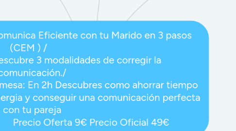 Comunica Eficiente con tu Marido en 3 pasos (CEM ) / Descubre 3 modalidades de corregir la comunicación./ Promesa: En 2h Descubres como ahorrar tiempo y energia y conseguir una comunicación perfecta con tu pareja Precio Oferta 9€ Precio Oficial 49€ von Mind Map: Comunica Eficiente con tu Marido en 3 pasos (CEM ) /                                                    Descubre 3 modalidades de corregir la             comunicación./                                                 Promesa: En 2h Descubres como ahorrar tiempo y energia y conseguir una comunicación perfecta con tu pareja                                                 Precio Oferta 9€ Precio Oficial 49€