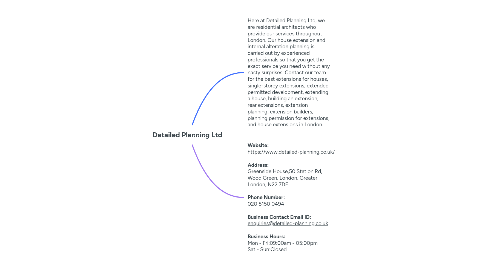 2. **Website:** https://www.detailed-planning.co.uk/ **Address:** Greenside House,50 Station Rd, Wood Green, London, Greater London, N22 7DE **Phone Number:** 020 8150 0494 **Business Contact Email ID:** enquiries@detailed-planning.co.uk **Business Hours:** Mon - Fri:09:00am - 05:00pm Sat - Sun:Closed