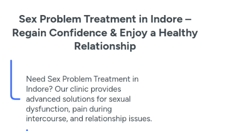 1. Need Sex Problem Treatment in Indore? Our clinic provides advanced solutions for sexual dysfunction, pain during intercourse, and relationship issues.