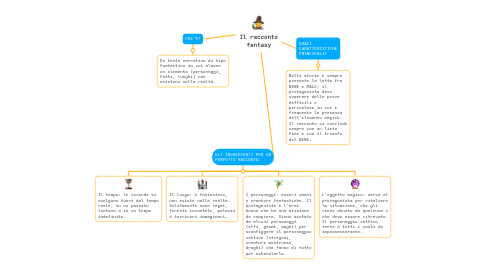 3.3. I personaggi: esseri umani o creature fantastiche. Il protagonista è l'eroe buono che ha una missione da compiere. Viene aiutato da alcuni personaggi (elfi, gnomi, maghi) per sconfiggere il personaggio cattivo (stregoni, creature mostruose, draghi) che fanno di tutto per ostacolarlo.