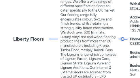1.1. **Website:** https://www.libertyfloors.co.uk/ **Address:** Acklam Hal, Hall Drive, Middlesbrough, North Yorkshire, TS5 7DY **Phone Number:** 03330507471 **Business Email:** admin@liberyfloors.co.uk **Business Hours:** Mon - Sat: 09:30 AM - 04:30 PM Sun : Closed
