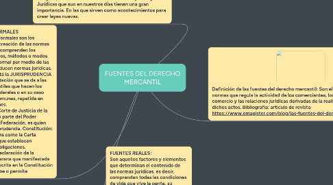 1. FUENTES FORMALES Las Fuentes Formales son los procesos de creación de las normas jurídicas que comprenden los procedimientos, métodos o modos de carácter formal por medio de las cuales se producen normas jurídicas. Entre ellas está la JURISPRUDENCIA Es la interpretación que se da a las Leyes Mercantiles que hacen los Tribunales Federales o en su caso Tribunales Comunes, repetida en cinco ocasiones. La Suprema Corte de Justicia de la Nación, como parte del Poder Judicial de la Federación, es quien hace la Jurisprudencia. Constitución: Se lo considera como la Carta Magna en la que establecen Derechos y obligaciones. Ley: Es una declaración de la voluntad soberana que manifestada en forma prescrita en la Constitución Manda, Prohíbe o permite