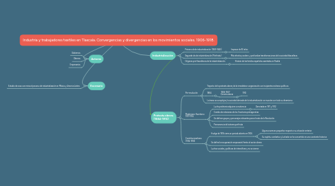Industria y trabajadores textiles en Tlaxcala. Convergencias y divergencias en los movimientos sociales. 1906-1918. por Mind Map: Industria y trabajadores textiles en Tlaxcala. Convergencias y divergencias en los movimientos sociales. 1906-1918.