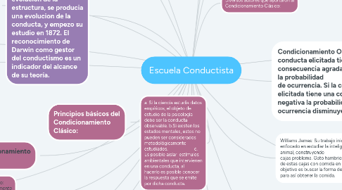 5. Wundt elabora sistemáticamente un cierto método introspectivo para el examen de la propia conciencia y el análisis de sus contenidos, estados y procesos. La conciencia, así examinada, aparece como una estructura de elementos -básicamente, sensaciones y afectos- coordinados en diversos conjuntos mediante leyes de asociación y síntesis, al modo de una física o una química mental.En 1910, fue representado por Watson da inicio al condicionamiento clásico. En los años siguiente hasta los años 50, Skinner fue uno de los precursores más influyentes de este paradigma, conocido como el espíritu del conductismo radical.
