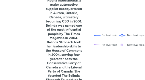 Belinda Stronach Website: https://twitter.com/BelindaStronach Address: 455 Magna Drive, Aurora, Ontario, L4G 7A9, Canada Phone: 1 (905) 726-7600 Belinda Stronach served as an executive of Magna International and a member of parliament in the Canadian House of Commons. Ms. Stronach served in a variety of roles at Magna International, a major automotive supplier headquartered in Aurora, Ontario, Canada, ultimately becoming CEO in 2001. Belinda was named one of the most influential people by The Times Magazine in 2004. Belinda Stronach took her leadership skills to the House of Commons in 2004, serving four years for both the Conservative Party of Canada and the Liberal Party of Canada. She founded The Belinda Stronach Foundation in 2008; a social impact organization with the goal of improving health outcomes of women and children. Now serving as Chairman and President of The Stronach Group, Belinda Stronach continues building her legacy with success in racing, gaming, and entertainment. #Horse Racing #Belinda Stronach Twitter: https://twitter.com/belindastronach por Mind Map: Belinda Stronach  Website: https://twitter.com/BelindaStronach  Address: 455 Magna Drive, Aurora, Ontario, L4G 7A9, Canada  Phone: 1 (905) 726-7600  Belinda Stronach served as an executive of Magna International and a member of parliament in the Canadian House of Commons. Ms. Stronach served in a variety of roles at Magna International, a major automotive supplier headquartered in Aurora, Ontario, Canada, ultimately becoming CEO in 2001. Belinda was named one of the most influential people by The Times Magazine in 2004. Belinda Stronach took her leadership skills to the House of Commons in 2004, serving four years for both the Conservative Party of Canada and the Liberal Party of Canada. She founded The Belinda Stronach Foundation in 2008; a social impact organization with the goal of improving health outcomes of women and children. Now serving as Chairman and President of The Stronach Group, Belinda Stronach continues building her legacy with success in racing, gaming, and entertainment.  #Horse Racing #Belinda Stronach  Twitter: https://twitter.com/belindastronach