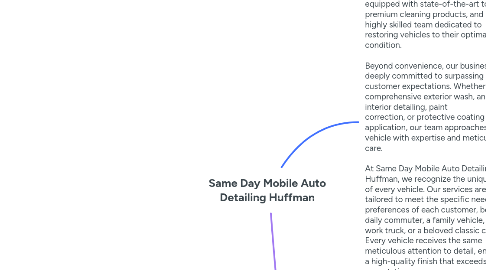 1. Nestled within the thriving community of Huffman, Texas, Same Day Mobile Auto Detailing Huffman stands as a pinnacle of excellence and reliability in the realm of automotive care and detailing services. Our strategically located business symbolizes accessibility and expertise, catering to vehicle owners seeking top-notch detailing and restoration services in this close-knit suburban town. Strategically positioned within Huffman's diverse neighborhoods and surrounding areas, our mobile detailing service covers the entirety of the town, serving customers across various residential communities and local businesses. This strategic placement emphasizes our commitment to providing convenient and comprehensive car detailing solutions throughout Huffman. Same Day Mobile Auto Detailing Huffman takes pride in delivering professional and meticulous detailing services directly to customers' locations. Our mobile units are equipped with state-of-the-art tools, premium cleaning products, and a highly skilled team dedicated to restoring vehicles to their optimal condition. Beyond convenience, our business is deeply committed to surpassing customer expectations. Whether it's a comprehensive exterior wash, an in-depth interior detailing, paint correction, or protective coating application, our team approaches each vehicle with expertise and meticulous care. At Same Day Mobile Auto Detailing Huffman, we recognize the uniqueness of every vehicle. Our services are tailored to meet the specific needs and preferences of each customer, be it a daily commuter, a family vehicle, a work truck, or a beloved classic car. Every vehicle receives the same meticulous attention to detail, ensuring a high-quality finish that exceeds expectations. Huffman's tight-knit community and diverse range of vehicles align perfectly with Same Day Mobile Auto Detailing Huffman's commitment to excellence and adaptability in the car detailing industry. We continuously strive to remain updated on the latest techniques, eco-friendly practices, and premium products to guarantee superior results and maximum customer satisfaction. In essence, Same Day Mobile Auto Detailing Huffman represents more than just a car detailing service; it embodies trust, expertise, and convenience in providing exceptional automotive care directly to customers' locations. Our presence in Huffman signifies our unwavering dedication to enhancing the appearance and preservation of vehicles while upholding values of reliability, transparency, and a commitment to delivering a pristine shine every time.