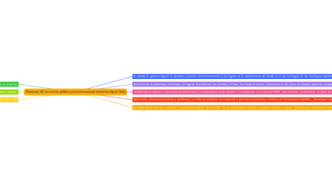 8. pestañas: Media( noticias, columnas), Transformación Digital( Hoja de Ruta, ley de transformación digital, estándares digitales y guias , estadisticas), plataformas transversales ( identidad digital: Clave unica, firma Gob, Digitalizacion: RNT , SIMPLE, interoperabilidad, comunicaciones