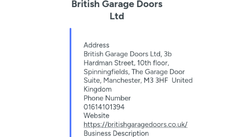 1. Address British Garage Doors Ltd, 3b Hardman Street, 10th floor, Spinningfields, The Garage Door Suite, Manchester, M3 3HF United Kingdom Phone Number 01614101394 Website https://britishgaragedoors.co.uk/ Business Description At British Garage Doors, we specialise in offering a wide range of high-quality garage doors tailored to meet the diverse needs of our customers. From single, double, and triple garage doors to insulated and composite designs, our products are crafted to enhance both security and aesthetics. We provide comprehensive services including the installation of automatic openers, security grilles, and bespoke garage doors, ensuring your garage is both functional and stylish. Our team is dedicated to delivering exceptional service, from initial consultation to installation, to guarantee customer satisfaction and optimal performance of your garage door. Category garage door, automatic door, sliding door, workshop door Opening Hours Mon-Fri 9am-5pm Keywords Garage Door, automatic door, sliding door, workshop door.