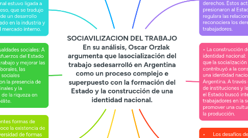 SOCIAVILIZACION DEL TRABAJO En su análisis, Oscar Orzlak argumenta que lasocialización del trabajo sedesarrolló en Argentina como un proceso complejo e superpuesto con la formación del Estado y la construcción de una identidad nacional.