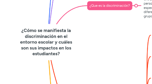 ¿Cómo se manifiesta la discriminación en el entorno escolar y cuáles son sus impactos en los estudiantes? por Mind Map: ¿Cómo se manifiesta la discriminación en el entorno escolar y cuáles son sus impactos en los estudiantes?
