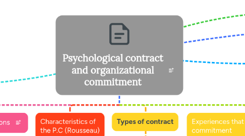 1. 4 types of psychological contracts transactional, transitional, relational and balanced Breach (cognitive) vs. violation (emotional) 3 types of commitment affective, normative and continuance Contract breach affects the employees’ level of organizational commitmen