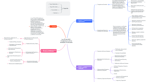 2.1. La Ley 715 de 2001 establece un marco normativo fundamental para la organización y el funcionamiento del sistema educativo en Colombia, especialmente en lo que respecta a la administración de recursos y la descentralización del servicio educativo. A través de sus distintos artículos, esta ley distribuye responsabilidades y competencias entre los departamentos, municipios certificados y municipios no certificados, buscando garantizar una educación de calidad, equidad y cobertura a nivel nacional.