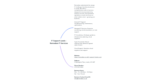 1. Remedian understands the unique IT challenges faced by businesses in Leeds. We offer a comprehensive suite of services designed to boost productivity, enhance security, and streamline operations, so you can focus on what matters most – growing your business. General IT Support: Troubleshooting, maintenance, optimization Managed IT Services: Proactive monitoring, remote assistance, on-site support IT Consultancy: Strategic guidance, infrastructure planning, cloud migration Cyber Essentials: Robust cybersecurity defenses against cyber threats Cloud Support: Seamless cloud migration and support
