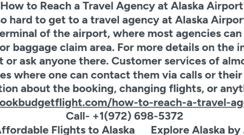 Best flight booking Agency in Alaska How to Reach a Travel Agency at Alaska Airport? It is easy and not so hard to get to a travel agency at Alaska Airport. One just needs to get to the main terminal of the airport, where most agencies can be found near the check-in counters or baggage claim area. For more details on the instructions, visit the boards at the airport or ask anyone there. Customer services of almost all travel agencies have found places where one can contact them via calls or their websites to seek information about the booking, changing flights, or anything else. Visit- https://www.bookbudgetflight.com/how-to-reach-a-travel-agency-at-alaska-airport/ Call- +1(972) 698-5372 Affordable Flights to Alaska Explore Alaska by Air Best Alaska Airline Services Top Rated Alaska Flights Last-Minute Flight Deals Alaska