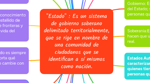"Estado" : Es un sistema de gobierno soberano delimitado territorialmente, que se rige en nombre de una comunidad de ciudadanos que se identifican a sí mismos como nación.por Elky Vasquez
