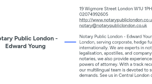 1. 19 Wigmore Street London W1U 1PH UNITED KINGDOM 02074992605 http://www.notarypubliclondon.co.uk/ notary@notarypubliclondon.co.uk Notary Public London - Edward Young is a relied on notarial practice based in London, serving corporate, hedge funds, and private clients throughout the UK and internationally. We are experts in notarial services, consisting of document legalisation, apostilles, and company paperwork for overseas usage. As experienced notaries, we also provide experienced assistance in wills, probate, and long-term powers of attorney. With a track record for precision, performance, and discretion, our multilingual team is devoted to supplying fast, certified service tailored to your demands. See us in Central London or book a mobile or remote appointment.