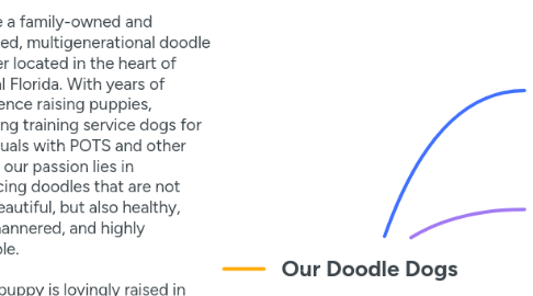 1. We are a family-owned and operated, multigenerational doodle breeder located in the heart of Central Florida. With years of experience raising puppies, including training service dogs for individuals with POTS and other needs, our passion lies in producing doodles that are not only beautiful, but also healthy, well-mannered, and highly trainable. Every puppy is lovingly raised in our home, surrounded by family, and given the attention and socialization needed to thrive as part of yours. Our focus on quality, temperament, and early training helps ensure each doodle grows into a loyal, loving, and dependable companion. We take pride in matching families with the perfect puppy to bring joy, comfort, and companionship for years to come.