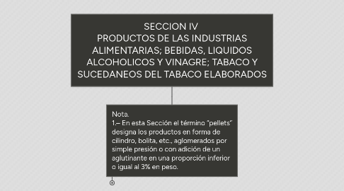 SECCION IV PRODUCTOS DE LAS INDUSTRIAS ALIMENTARIAS; BEBIDAS, LIQUIDOS ALCOHOLICOS Y VINAGRE; TABACO Y SUCEDANEOS DEL TABACO ELABORADOS por Mind Map: SECCION IV  PRODUCTOS DE LAS INDUSTRIAS ALIMENTARIAS; BEBIDAS, LIQUIDOS ALCOHOLICOS Y VINAGRE; TABACO Y SUCEDANEOS DEL TABACO ELABORADOS