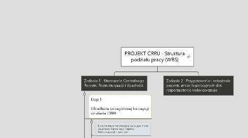 PROJEKT CRRU - Struktura podziału pracy (WBS) por Mind Map: PROJEKT CRRU - Struktura podziału pracy (WBS)
