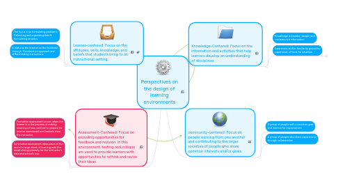 1. Assessment-Centered: Focus on providing opportunities for feedback and revision. In this environment, testing and critique are used to provide learners with opportunities to rethink and revise their ideas.