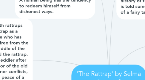 1. The story begins with rattraps and ends with a rattrap as a present for someone who has helped a rat to get free from the rattrap. Even the middle of the story revolves round the rattrap. The actions of the peddler after he steals thirty kronor of the old crofter reveal the inner conflicts, tensions and lack of peace of a person who touches the bait of temptation. Renunciation of the temptation helps in redemption.
